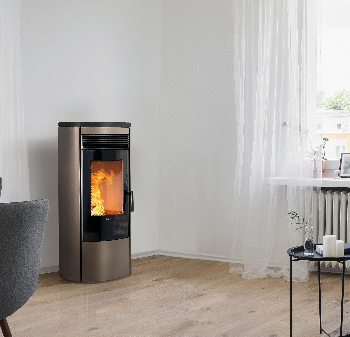Mit einer Nennleistung von über 11 Kw und einem Wirkungsgrad von über 91% ist der Pelletofen Omega Muli Air von Klover in die Energieeffizienzklasse A+ eingestuft. Er ist mit zahlreichen Innovationen ausgestattet und lässt sich per WiFi oder vor Ort mit seiner Fernbedienung programmieren und regeln. Mit seinen Hochleistungskerzen zündet er praktisch sofort und sein Brenner ist selbstreinigend.