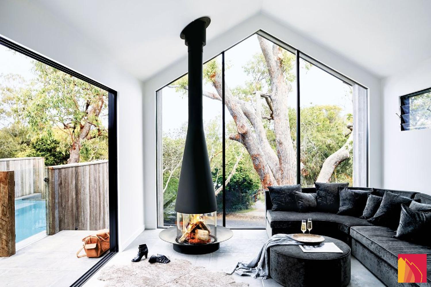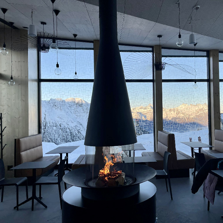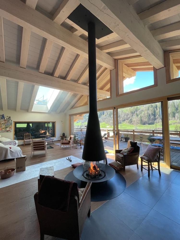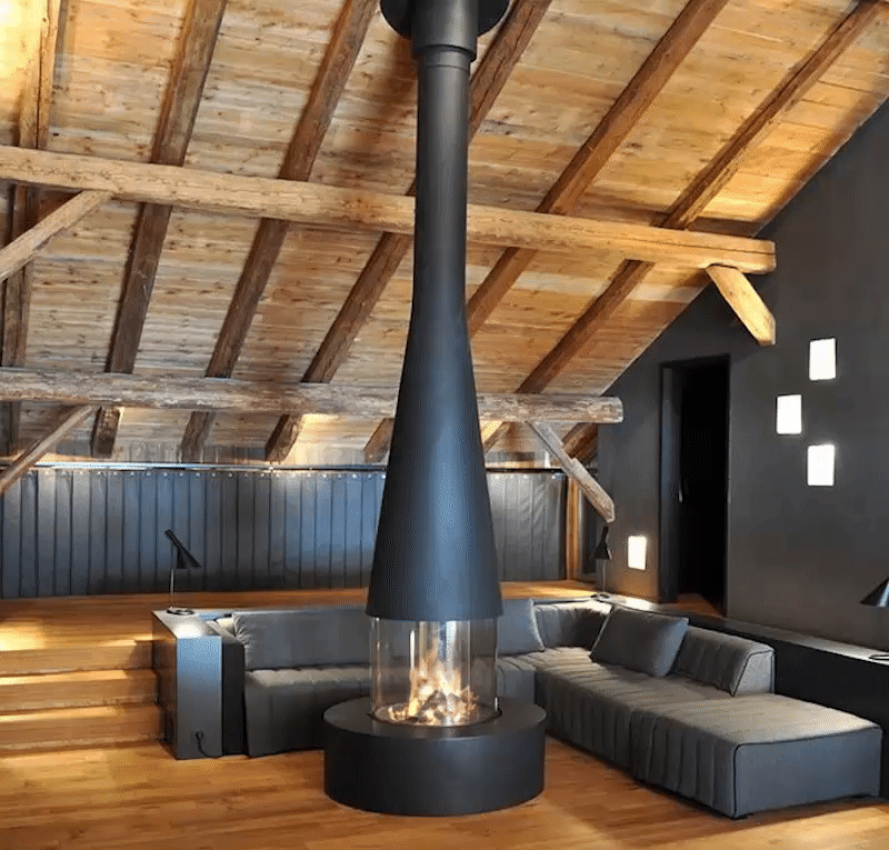 Well beyond its initial role as a heating appliance, the Filiofocus central glass fireplace is an undeniable decorative element. Particularly modular with its many options, this central fireplace, all round, from the Focus Workshops, has a little something ethnic about it. Composed of a conical hood with variable diameter and height in its flexible version, a spark arrester made of four curved pyroceramic glass panes (two fixed transoms and two sliding glass panes) and a fire bed, the Filiofocus central glass fireplace has been awarded numerous distinctions for its original design. Another special feature of this central fireplace under a conical hood is that its hearth bowl can be placed on the floor, included directly in the floor or raised thanks to a matching metal base. A real rallying point for the whole family or friends, it is of an unparalleled conviviality.