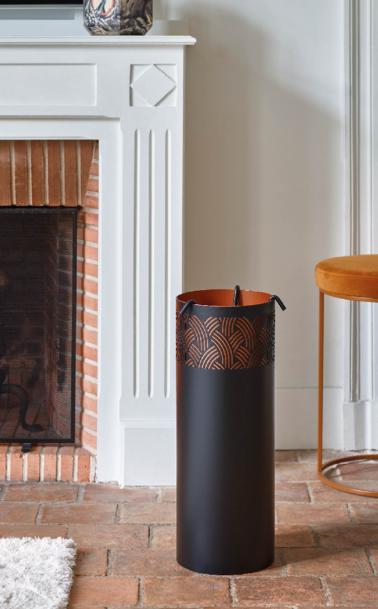 Avec ses lignes inspirées du mouvement Art Déco, ce serviteur est joliment agrémenté d’une bande finement ciselée laissant apparaître en transparence une belle couleur cuivrée en acier.